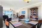 DIRECT OCEANFRONT, CORNER CONDOMINIUM HOME. WALLS OF GLASS REVEAL MILES OF COASTAL VIEWS. THE INTERIORS HAVE UNDERGONE A COMPLETE & THOROUGH REMODEL, WITH A WOW AT EVERY TURN! THE MAIN ENTERTAINING SPACE ENCOMPASSES THE OCEANFRONT LIVING AND DINING ROOMS WITH DESIGNER LIGHTING AND BALCONY ACCESS. A SHOW KITCHEN WITH NAUTICAL BLUE & WHITE FINISHES, A FULL SUITE OF SS APPLIANCES AND BUILT-IN PANTRY WITH 2ND TIER GLASS DOORS. SCREENED LANAI OVERLOOKING THE RIVERFRONT OPENS INTO A GALLERY FOYER WITH AN ELEGANT LOUNGE. A STUNNING OWNER'S SUITE WITH OCEAN VIEWS. A SPA STYLE PRIMARY BATH WITH RELAXATION TO ENJOY FROM EVERY ANGLE! CONTEMPORARY TRUE LVT FLOORING, HANDSOME CROWN MOLDINGS AND PLANTATION SHUTTERS COMPLEMENT THIS DREAM CONDO! NEW HURRICANE SHUTTERS, TRANE AIR CONDITIONER & LUXE REFRIGERATOR! SUPERBLY MAINTAINED COMMUNITY WITH UPDATED LOBBY SHOWCASING STACKED STONE, MARBLE FLOORS AND SOCIAL AREAS. 5 STAR, WORLD-CLASS OFFERING! MOVE-IN READY!