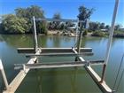 Under contract-accepting backup offers. Fisherman’s Paradise! Direct Gulf access and just one boat turn to open water from this 2-bedroom, 1-bath, move-in ready waterfront home situated on a cul-de-sac along a wide, deep-water canal. A protected bird sanctuary sits directly across the water, preserving your peaceful natural view. Watch dolphins and manatees play right from your dock. Enjoy your 47' x 12.5' solid, over-built dock/deck—nearly 600 sq ft—with a 12, 000 lb boat lift ready for effortless Gulf adventures. Whether you're fishing at dawn or entertaining at sunset, this property delivers the true Florida waterfront lifestyle. Newer appliances add everyday comfort and convenience. The attached two-story garage (778 sq ft) features front and waterside bay doors—perfect for vehicles, water toys, or creating the ultimate retreat space. Above it, the 880 sq ft unfinished bonus area offers incredible flexibility for a guest suite, studio, or home office. The HVAC platform is already in place, and sewer plumbing is pre-connected for future second-story completion. Completing the upper level will capture Gulf views—perfect for enjoying your morning coffee or evening coastal breezes. A fenced yard, ample parking, and a separate laundry shed add even more convenience. No HOA. No CDD. Steps from the marina and waterfront dining, and just minutes to beaches, shopping, and entertainment. Waterfront properties with this access, natural surroundings, and future expansion potential are rare—schedule your showing today.