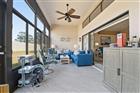 One or more photo(s) has been virtually staged. Step into a home that feels instantly welcoming — beautifully maintained, single-owner, and thoughtfully updated so you can move in with confidence. Bright, open living spaces with vaulted ceilings set the tone, creating a sense of comfort the moment you walk through the door. This versatile layout includes 2 bedrooms, 2 fully renovated bathrooms, a dedicated office/den, a 2-car garage, and an air-conditioned enclosed patio that expands your living space year-round. Whether you work from home, host guests, or simply want room to unwind, this home adapts effortlessly. Major upgrades are already done for you: brand-new roof (2024), new flooring (2025), fresh interior paint (2024), newer AC (2019), and modernized bathrooms. The primary suite stands out with a double vanity, fog-resistant mirrors, and a sleek walk-in shower with soft-closing barn-style glass sliders. Every window and door is hurricane-impact rated up to 175 mph, offering premium protection and long-term value. Located near the end of a quiet cul-de-sac in a well-kept HOA community, this home delivers privacy, peace of mind, and true move-in-ready appeal.