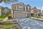 One or more photo(s) has been virtually staged. Rare end-unit townhome in a gated community with peaceful wooded and creek views, major recent upgrades, and a prime location just 15–20 minutes from Tampa—offering a move-in ready, low-maintenance lifestyle that is hard to find. This light-filled home features added privacy and abundant natural light, along with a NEW roof (August 2024) and NEW energy-efficient A/C (November 2025). Interior updates include new flooring in the dining room, family room, and front bedroom, plus a Nest thermostat for modern comfort. The fully renovated kitchen is designed for both everyday living and entertaining, featuring quartz countertops with a matching backsplash and waterfall edge, upgraded cabinet hardware, additional ceiling lighting, a large Kraus chef sink and faucet, and stainless steel appliances. The spacious primary suite offers serene treetop views, while the updated primary bath includes quartz countertops, upgraded lighting and mirrors, new fixtures, freshly painted cabinetry, and a large soaking tub. A well-appointed secondary bathroom also features quartz counters, updated fixtures, and added mirrored storage. The front bedroom includes new wood flooring and a custom wall-mounted closet system for exceptional organization. Step outside to enjoy a tranquil backyard setting with mature trees and a peaceful creek, creating a rare natural backdrop where wildlife can often be seen—an ideal space to relax and unwind. Residents enjoy access to two resort-style pools, scenic ponds, and a well-maintained gated neighborhood. The HOA covers water, garbage, cable, internet, exterior pest control, exterior maintenance, roof, insurance, and landscaping—providing true maintenance-free living. Conveniently located near the interstate for an easy Tampa commute and close to shopping, dining, medical facilities, parks, and entertainment, this end-unit townhome combines location, upgrades, privacy, and lifestyle in one exceptional opportunity.