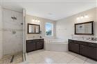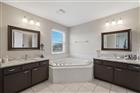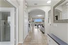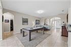 This 5-bedroom, 3-bath home with a 2-car garage offers a spacious layout designed for comfortable living, complemented by serene water views that capture the essence of Florida living. As you enter the bright foyer, you’re drawn in by the high ceilings and immediately notice the double glass doors with built-in blinds between the panes to the left, leading to a spacious office with two large windows and dark wood plank flooring. From the office, a set of French doors leads into a versatile flex space currently used as a home gym. Positioned between the office and kitchen, this room serves as a convenient corridor connecting the two areas while a window fills the space with natural light. Moving forward from the foyer, you pass the staircase leading to the second floor before walking through the arched opening into the living room, where wide sliding glass doors frame peaceful water views beyond the backyard. To the left is the kitchen and dining area, which features large windows and a pass-through opening above the kitchen sink that can be used as a breakfast bar while also connecting the space to the living room. The kitchen features granite countertops, dual sink, stainless steel appliances, white tile backsplash, and solid wood cabinetry. On the opposite side of the main living area sits a large bedroom with a walk-in closet, adjacent to a bathroom with direct pool access that includes a single vanity with storage and framed mirror along with a glass-enclosed step-in shower. Nearby, the laundry room provides built-in shelving for storage. The top of the stairs opens to a flex space with wood-look luxury vinyl flooring and an open-to-below view overlooking the foyer. Nearby, the primary bedroom includes luxury vinyl flooring, extra space for a sitting area or reading nook, several windows, walk-in closet, and double doors leading to the ensuite bathroom. The ensuite bathroom features a corner soaking tub beneath a window, double vanities with wood framed mirrors and granite countertops, and a step-in shower with marble-like tile, frameless glass partition, and rainfall shower head. The remaining bedrooms feature matching flooring, natural light from exterior windows, and built-in closets. The second-floor guest bathroom has tile flooring, granite countertops, dual vanities with framed mirror and cabinet storage below, and a step-in shower with marble-like tile extending to the ceiling, frameless glass doors, and rainfall shower head. At the rear of the home, the covered porch connects to the screened pool area while overlooking the lake and wooded landscape beyond. Additional upgrades include hurricane impact windows throughout, two new A/C systems installed in 2021, a roof replaced in 2020, exterior paint completed in 2023, a kitchen renovation in 2024, and a bathroom remodel completed in 2025. The pool is also equipped with a heater for year-round enjoyment. Located in Odessa, the home offers convenient access to Starkey Wilderness Preserve with miles of trails for hiking and cycling, Lake Rogers Park for fishing and kayaking, and the Suncoast Parkway providing direct routes toward Tampa for shopping, dining, and commuting while still enjoying a setting connected to nature and open water views.