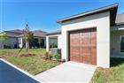 Presenting a newly constructed villa available for lease. This single-story residence comprises two spacious bedrooms, two modern bathrooms, a versatile flex room, and an open-concept kitchen. A screened patio is forthcoming, offering enhanced privacy. The primary suite includes a walk-in closet, linen storage, and a well-appointed en-suite bathroom with dual sinks and a shower (no tub). Additional features consist of an interior laundry area equipped with washer and dryer, ceramic flooring throughout (with carpeting in the bedrooms), a single-car garage, and dedicated golf cart or storage space located at the rear of the property.