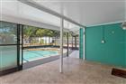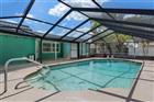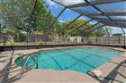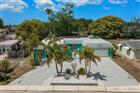 Welcome to this beautifully maintained 2-bedroom, 2-bath salt water pool home offering the perfect blend of comfort, functionality, and true Florida living--without the burden of Deed Restrictions, HOA or CDD fees. Nestled on a fully fenced lot with lush, mature tropical landscaping, this property provides exceptional privacy and curb appeal, highlighted by a circular driveway and a charming courtyard-style entry. Significant recent upgrades provide peace of mind, including a brand-new roof (February 2026), brand-new A/C system (February 2026), fresh exterior paint (2026), and a newer hot water heater (2020). Inside, you'll find an inviting open floor plan with a desirable split-bedroom layout. The main living area is enhanced with elegant chair rail detailing, while the well-appointed kitchen features stainless steel appliances, a stylish tiled backsplash, a beautiful granite island, and a reverse osmosis system--perfect for both everyday living and entertaining. There is a large family room that provides a versitle space perfect for relaxing with your family. The spacious primary suite offers a large walk-in closet and a private bath with a tub/shower combination. The guest bedroom is generously sized and also includes a walk-in closet. The guest bathroom has been tastefully updated with a step-in shower, newer vanity with granite countertop, and a newer toilet. Step outside to your own private tropical retreat. The screened-in saltwater pool is finished with Diamond Brite (2017) and complemented by a newer ''cool'' deck coating (2021) and a new pool pump (2022). Multiple outdoor living spaces provide flexibility and charm, including a large rear screened porch overlooking the pool, an open side patio, and a dedicated firepit area--ideal for relaxing or entertaining year-round. Additional features include a detached shed and an oversized garage complete with extensive cabinetry and a workbench, offering ample storage and workspace. This move-in ready home showcases thoughtful updates, versatile indoor and outdoor living spaces, and a serene backyard oasis--perfect for enjoying the very best of the Florida lifestyle.