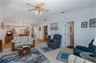 Stunning waterfront condo in a gated 55+ community. Lovely view from your large patio, perfect to entertain and barbeque. Home is light and bright with volume vaulted ceilings in the living and dining room area and so many upgrades. AC 2021, water heater 2024, new hurricane proof windows, updated appliances and washer and dryer. Solid wood cabinets in the kitchen, new vanities in both bathrooms, new laminate flooring, freshly painted and so much more. Covered carport with storage located at your front door. Guest bedroom with a walk-in closet and storage with pull down stairs. The primary bedroom will accommodate all your furnishings. You will love the bright Florida room to have your morning breakfast. This is picture perfect thru out!! Community pool and clubhouse for your enjoyment. Pets welcome. This is the perfect place to call home or a winter retreat. See it before it is gone.